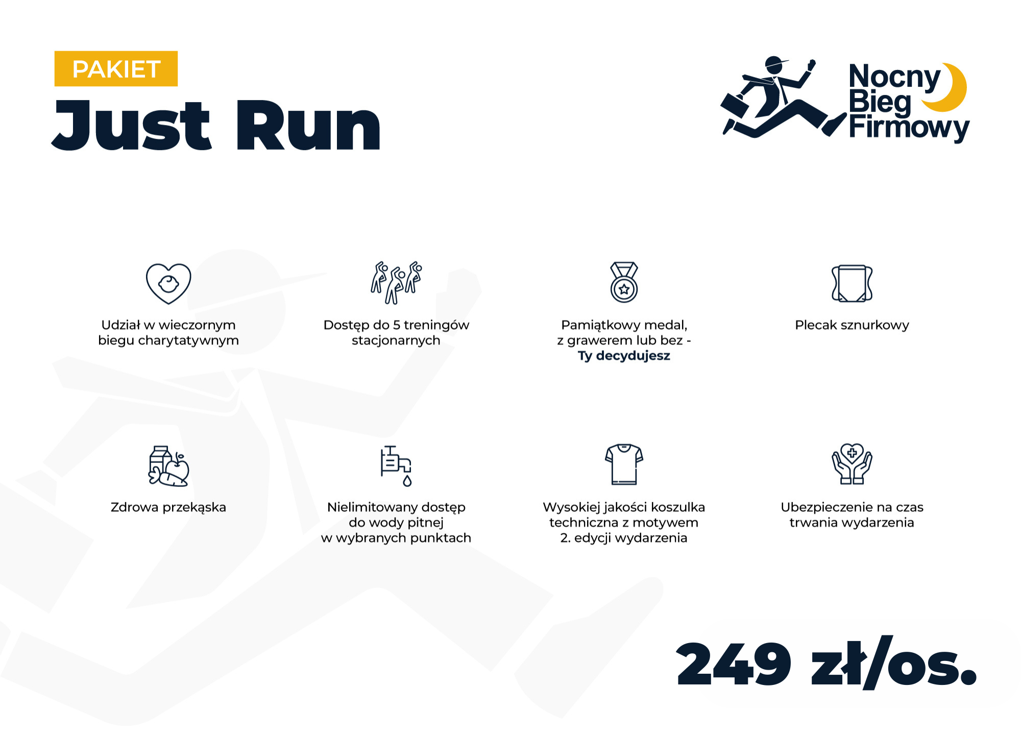 Pakiet JUST RUN zapewnia każdemu uczestnikowi: